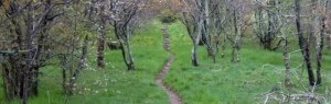 So we decided after some thought to hike on. We got back to the trail. At this point it was a muddy bog. 100 feet from the campsite I lost my balance avoiding a big puddle. I was able to grab a thick tree to keep myself out of the mud. But the tree did not want to hold my weight. It bent over right in the middle and eased me tenderly into the mud. I let go of the tree and it lazily raised itself to its normal position.  Then Gig and Off came over laughing and lifted me out of the mud. I stood there staring at that tree… “Your lucky I don’t have an axe…” I said. Then I headed South once again; listening to stifled giggles coming from behind me…
