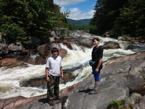 We then walked along the Penobscot River and under an amazing forest of huge pine trees. We were tired and hungry. At one break, while trying to satisfy hiker hunger, we dined on a Slim Jims dipped in Nuttella! Ah . . . Trail food!