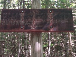 I knew I was in a precarious position. I was in the middle of the 100 Mile Wilderness. If I got really lost it would not be good. So I followed Rule Number One, “DON’T PANIC!” I stopped where I was, took a deep breath, and let myself relax. I waited. Then it came to me. The sound I was hearing was the creek bubbling away. The creek was right next to the trail. All I had to do was walk to the sound and I would hit the trail. It didn’t matter which way the campsite was on the trail, I could walk in each direction for ten minutes if I had too; either way I wouldn’t be lost.